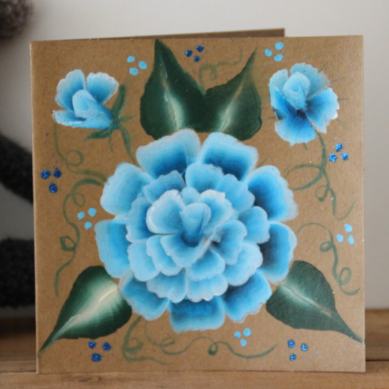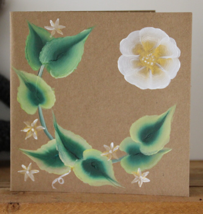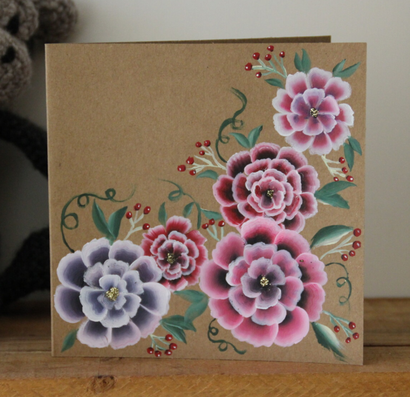Onderstaande kaartjes zijn stuk voor stuk handgeschilderd met vrolijke bloemen erop.